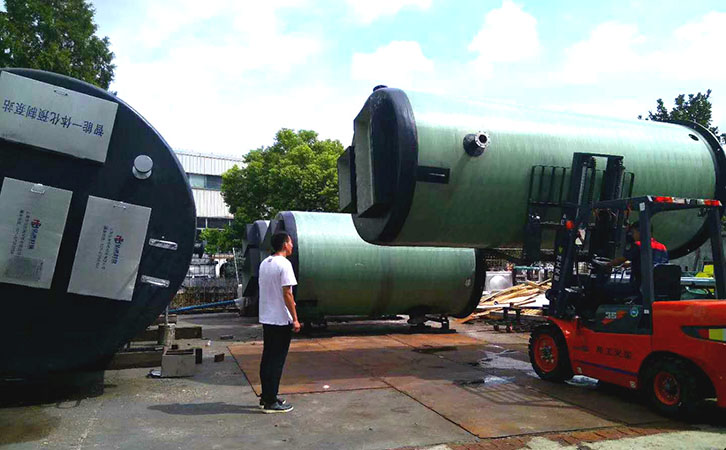 地埋式一體化污水泵站玻璃鋼筒體內,主要有潛水污水泵、除臭裝置、管路系統、防淤積的底座、水泵自動耦合裝置等,泵站的入水口出需要設置格柵,根據處理污水的水質不同選擇提籃格柵或者粉碎型格柵。