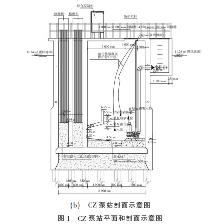 CZ 泵站位于河涌邊,原屬于潮州某污水處理廠的污水泵站,因污水處理廠周邊存在外江堤防、橋梁等因素,無法采用傳統重力流進污水廠,因此采用污水泵站提升后用壓力管過外江堤防和橋梁橋墩群。CZ 泵站進水管管徑 D600,管底標高 6.63 m,地面標高 11.24 m,埋深約 4.61 m。