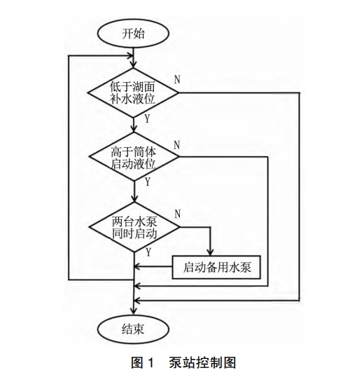 系統(tǒng)調(diào)試期間,利用人機(jī)操作程序的觸摸屏,準(zhǔn)確獲取補(bǔ)水液位參數(shù)、簡(jiǎn)體運(yùn)行的初始液位等參數(shù)。系統(tǒng)運(yùn)行期間,PLC能夠持續(xù)監(jiān)測(cè)簡(jiǎn)體、補(bǔ)水湖面各個(gè)位置的液位參數(shù),由傳感器進(jìn)行信息反饋,與初期設(shè)定參數(shù)進(jìn)行對(duì)比。當(dāng)水位參數(shù)不大于湖面、水位高于簡(jiǎn)體初始液位時(shí),同時(shí)運(yùn)行兩組水泵。如果一組水泵存在質(zhì)量問題,需暫停水泵,運(yùn)行備用水泵。當(dāng)補(bǔ)水液位高于初期設(shè)計(jì)參數(shù),此時(shí),水泵暫停運(yùn)行時(shí),需重新進(jìn)行信息監(jiān)測(cè)。(3)遠(yuǎn)程控制。人機(jī)操作單元是泵站遠(yuǎn)程監(jiān)控的關(guān)鍵,能夠監(jiān)測(cè)泵站的運(yùn)行狀況、反饋泵站運(yùn)行狀態(tài),顯示泵站操作人員,動(dòng)態(tài)呈現(xiàn)水泵程序的重要參數(shù)變動(dòng)過程,便于巡檢人員實(shí)時(shí)獲取水泵運(yùn)行情況。模塊開發(fā)后,表現(xiàn)出功能完整、操作便捷、可視性優(yōu)勢(shì)、運(yùn)維便捷等優(yōu)勢(shì)。利用CPU程序,使用驅(qū)動(dòng)程序補(bǔ)充系統(tǒng)所需的通訊協(xié)議,組建成聯(lián)動(dòng)通訊程序。結(jié)合系統(tǒng)真實(shí)運(yùn)行情況,有效掌握控制程序的設(shè)備運(yùn)行狀況,準(zhǔn)確設(shè)計(jì)設(shè)備各項(xiàng)參數(shù),創(chuàng)建數(shù)據(jù)變量,給出人機(jī)操作程序,確保動(dòng)態(tài)監(jiān)控的全面性。控制程序中添加了各組泵站的控制按鈕,比如,啟停鍵、功能切換鍵等。遠(yuǎn)程操作程序,可使用控制箱自主控制各類系統(tǒng)信號(hào)。一體式泵站內(nèi)置的控制程序,設(shè)有通信接口,能夠利用交換設(shè)備進(jìn)行信息傳輸,將信息傳送空曠無人、網(wǎng)絡(luò)覆蓋不全的位置。