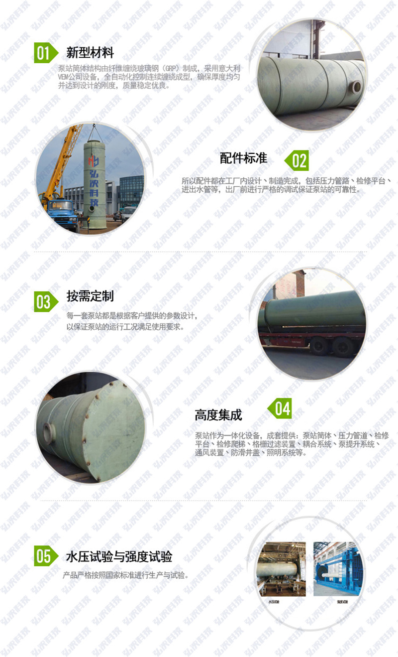 弘泱科技智能一體化泵站,采用玻璃鋼材質,使用壽命長達80年,泵站支持定制,廠家提供終身質保服務,品質有保證,一體化預制泵站適用于市政雨污提升,小區生活污水提升排放,污水廠廢水收集等領域。
