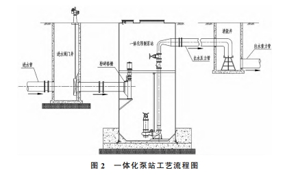根據一體化泵站工藝要求,在泵站前設置進水閥門井,在泵站后設置消能井,工程流程設計如圖2所示。