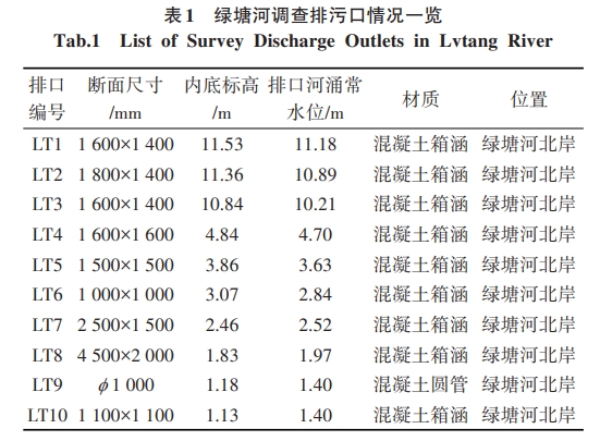本項目建設地點位于湛江市綠塘河下游段,起點為人民大道,終點為排???span lang="EN-US">,河段全長2.2 km,河道平均水力坡降為i=0.33%,平均河寬4.0~9.2m。下游段有2處暗渠匯入及10處沿河排污口,其分布位置如圖1所示,沿線排污口具體參數如表1所示。