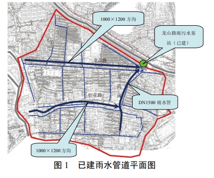 已建龍山路雨污水泵站為全地下式雨污水合建泵站,雨水泵站規模為 1.0m/s,污水泵房規模為 5萬 m'/d。自建成至今,泵站總體運行正常。但由于北渠抬水工程正處在實施階段,實施后北渠水位抬高,地區雨水將無法自排入渠,龍山路泵站泵排能力無法滿足區域內雨水的排放要求,