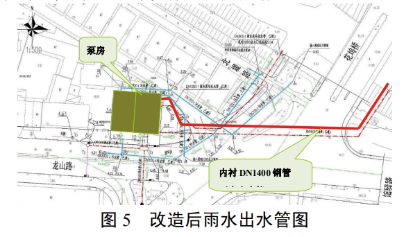 (2)充分利用泵房外部現狀管道設施,通過計算和管線切改,理順了泵房雨污水出路,改善了區域排水狀況。