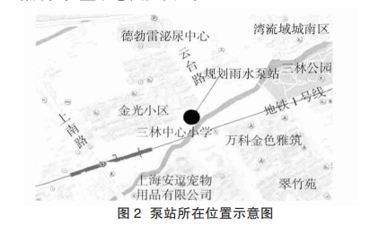 根據(jù)《三林地區(qū)金光雨水排水系統(tǒng)規(guī)劃--專業(yè)規(guī)劃》,金光區(qū)域采用雨污分流的排水系統(tǒng),雨水為強排模式,泄水面積為 165 hm',暴雨重現(xiàn)期P=5 a,雨水泵站設(shè)計規(guī)模為 15.47 m/s。規(guī)劃雨水泵站設(shè)置在云臺路、三林塘港交叉口的西北角泵站占地約3545.6m,雨水經(jīng)提升后排人規(guī)劃三林塘港。根據(jù)上海市水務(wù)局相關(guān)規(guī)定,在雨水泵站內(nèi)設(shè)置旱流污水截流設(shè)施,截流設(shè)施設(shè)計規(guī)模0.31萬 m'/d(見圖1)。