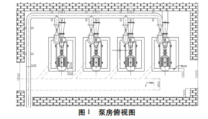 一個(gè)合理的泵房是整個(gè)泵站高效運(yùn)轉(zhuǎn)的保證。泵房是安裝水泵、電動(dòng)機(jī)、水泵控制柜及其他輔助設(shè)備的建筑物,是水泵站工程的主體,合理設(shè)計(jì)泵房,對(duì)節(jié)約工程投資,延長(zhǎng)設(shè)備使用壽命,保證安全和經(jīng)濟(jì)運(yùn)行都有重要意義。1 泵房?jī)?nèi)機(jī)組的布置本設(shè)計(jì)以4臺(tái)4PW 型號(hào)污水泵為例,采用縱向排列,對(duì)于頂進(jìn)側(cè)出的水泵,縱向排列可保證吸水管順直狀態(tài),降低泵房長(zhǎng)度,如圖1所示