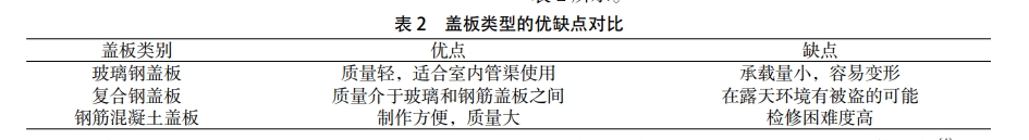 選擇蓋板時(shí),要考慮設(shè)備需要吊裝等運(yùn)行情況,因此,蓋板的頂部要設(shè)計(jì)大小不一的預(yù)留孔,泵站的頂部要鋪蓋板,蓋板的選擇多樣,各有優(yōu)缺點(diǎn),如表2所示