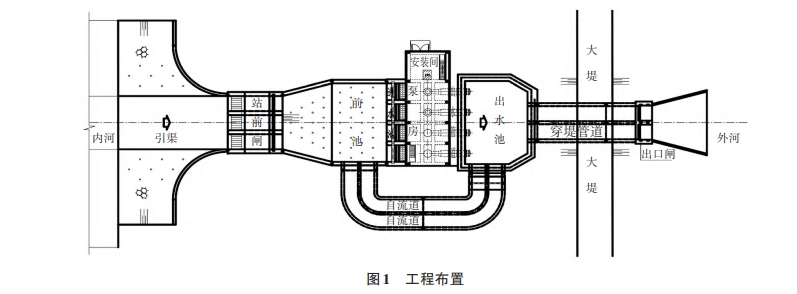以排水泵站為例,泵站工程按順水流方向一般布置有引渠、站前閘(含清污設施)、前池、進水池、泵房、出水管道、出水池、穿堤管道、出口閘等,如圖1所示。