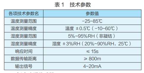 此類傳感器為傳感、變送一體化的設(shè)計(jì),能夠根據(jù)被測場地調(diào)整傳感器配置數(shù)量。通過 4-20mA 接口與主機(jī)相連并采用模擬量來對(duì)濕度、溫度進(jìn)行表達(dá)??刂浦行摹⒈谜疽材軌蛲ㄟ^系統(tǒng)實(shí)時(shí)檢查儀器室的環(huán)境變化,并對(duì)空調(diào)、新風(fēng)系統(tǒng)等進(jìn)行遠(yuǎn)程控制。主要技術(shù)參數(shù)可參考表1。