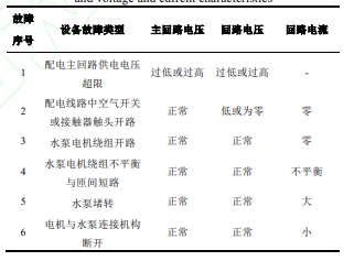 影響正常供水的泵房配電系統和設備主要故障有:配電主回路供電電壓超限、配電線路中空氣開關或接觸器觸頭開路、水泵電機繞組開路、水泵電機繞組不平衡與匝間短路、水泵堵轉、電機與水泵連接機構斷開。其中電機繞組不平衡與匝間短路、水泵堵轉等是一些文獻關注的故障。